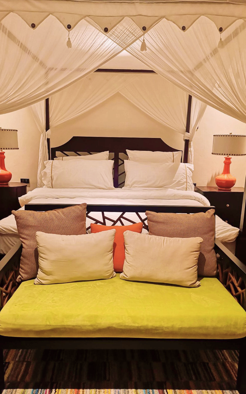 This 3-bedroom villa features master bedroom with a king canopy bed, and two additional rooms with twin beds that can comfortably host up to 6 guests. Perfect for those seeking peace, privacy, and unforgettable seaside moments.